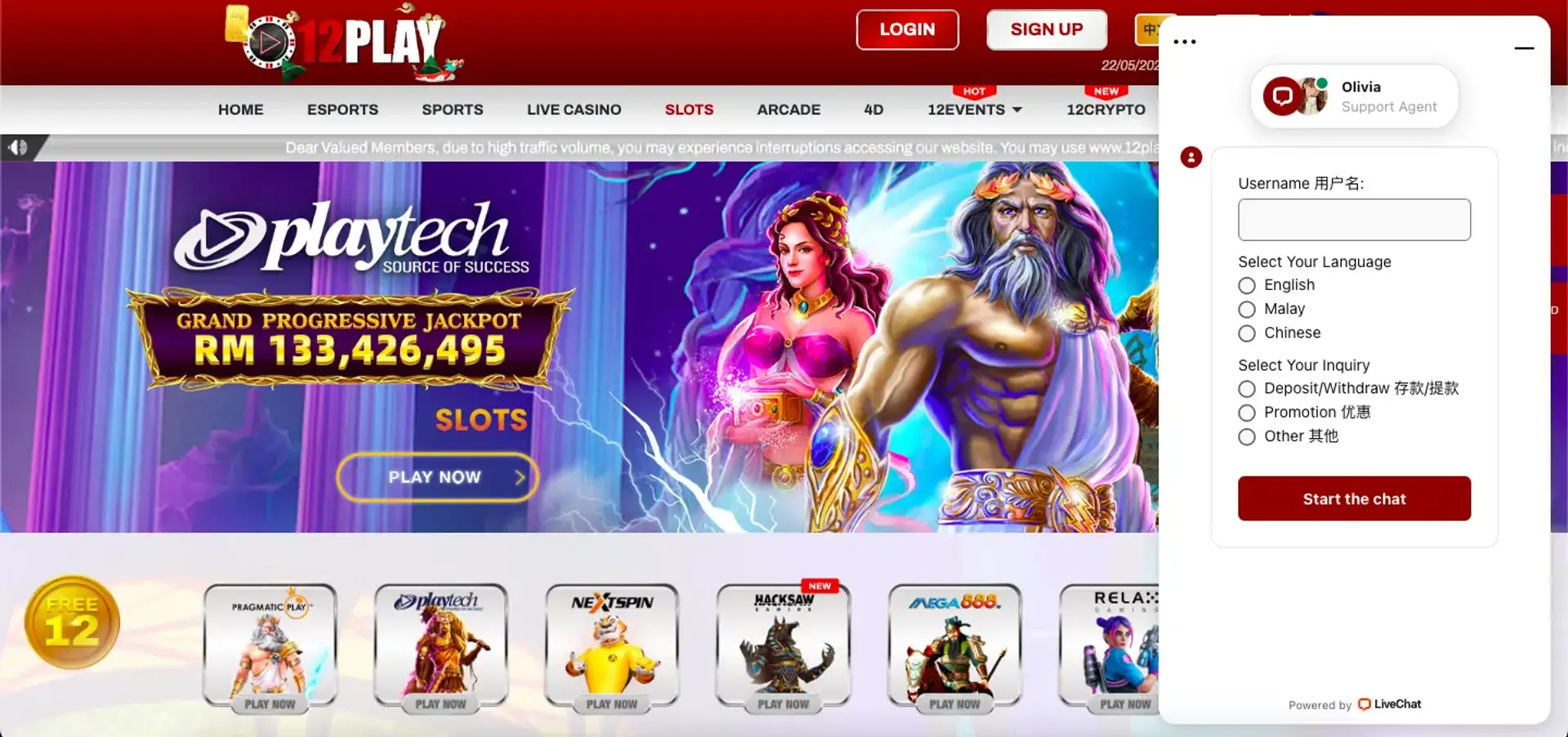 2. 12Play – Best Singapore Online Casino for Bonuses & Cashback